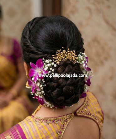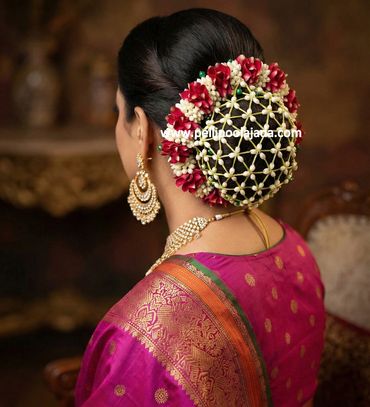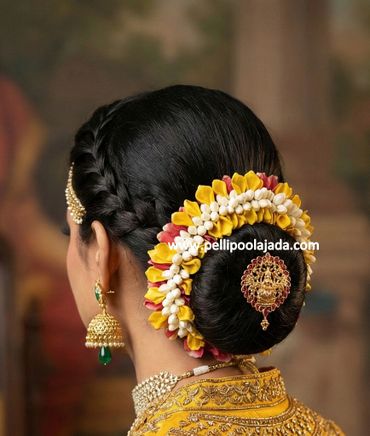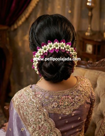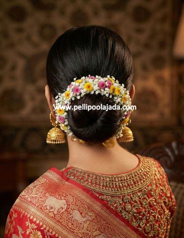 We are the original Pellipoolajada. We have 100 plus unique floral hairdo designs. Fresh flower jewellery, Fresh floral venis, orchids veni, venis, jasmine veni available. Wedding doll sets, Aarthi plate decor, Addutera online available. pelli butta available, Best kobbari bondam designs, wedding umbrellas available, wedding accessories online . Contact us - 9441455334